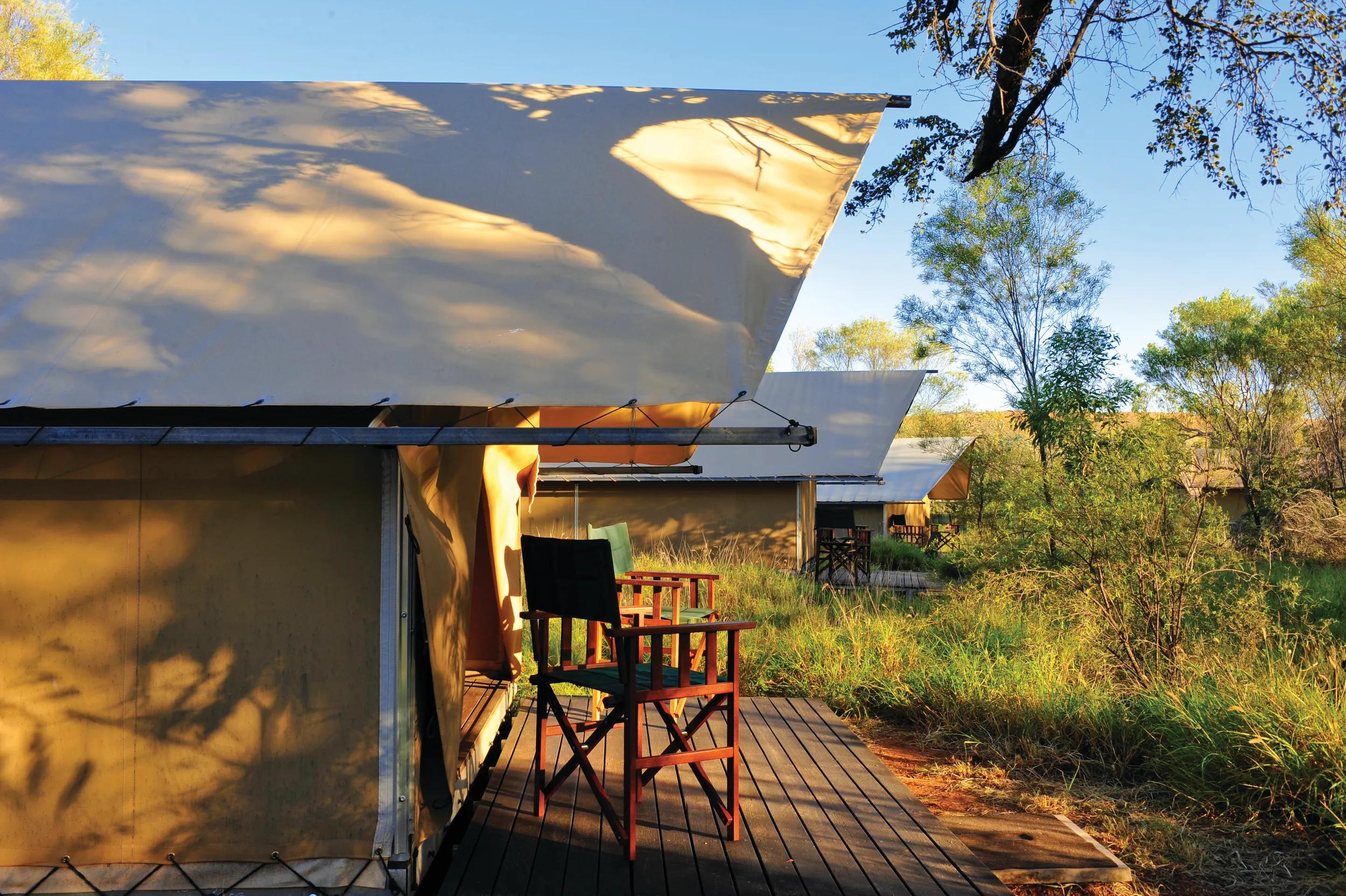 Journey deep into the heart of the remote Mitchell Plateau, where rugged landscapes give way to lush Livistona palm forests, breathtaking lookouts and cascading waterfalls that tumble into secluded swimming holes. Unwind on the private deck of your tented cabin, immersing yourself in the tranquillity of this untouched wilderness.