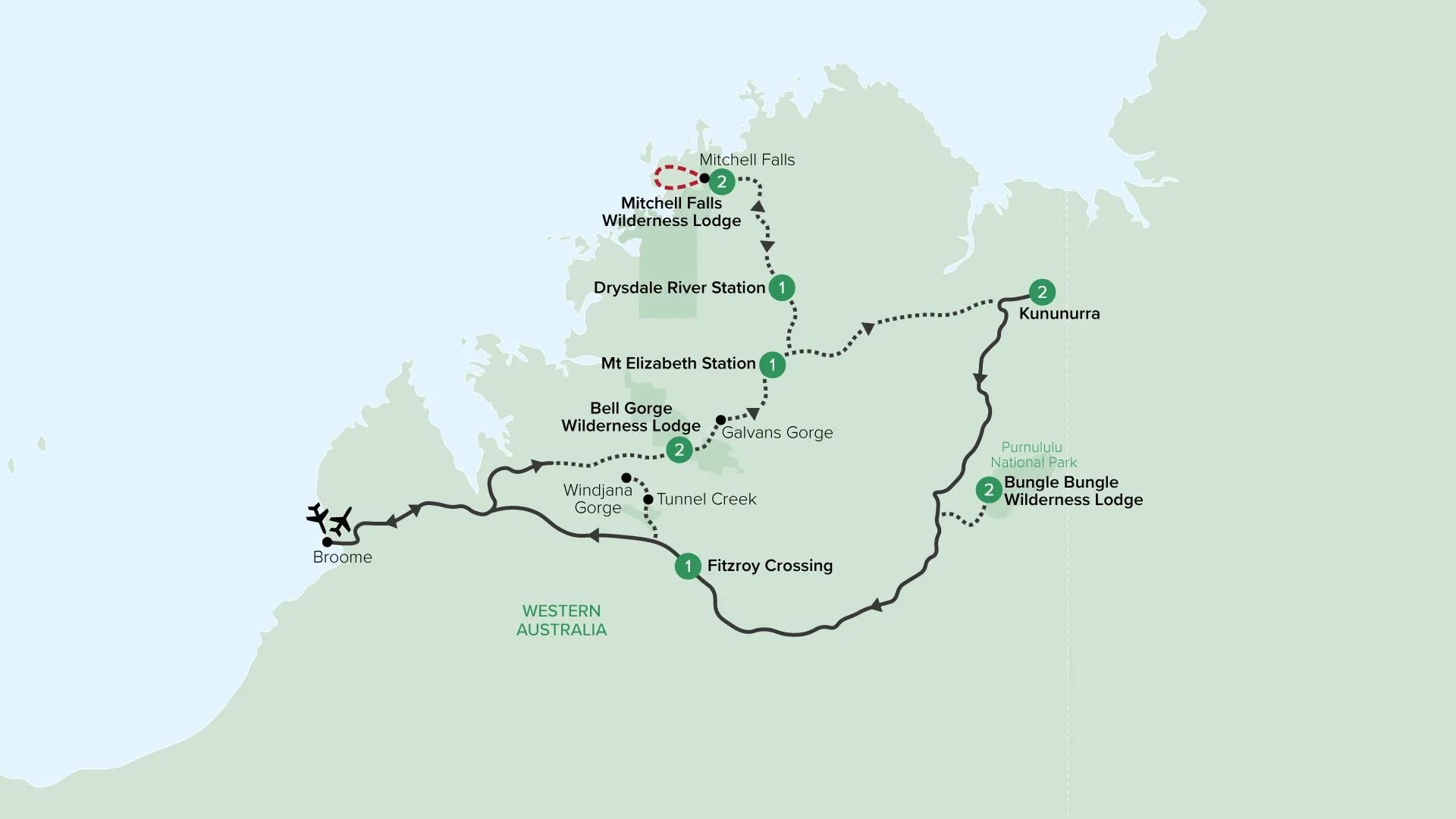 Today, explore Windjana Gorge, where towering limestone walls reveal ancient marine fossils embedded in their rugged formations. Then, continue to Tunnel Creek and wade through its cool, refreshing waters as you navigate Western Australia’s oldest cave system, emerging at a hidden oasis. Take a moment to admire the serene surroundings before journeying back to Broome, where your tour concludes.